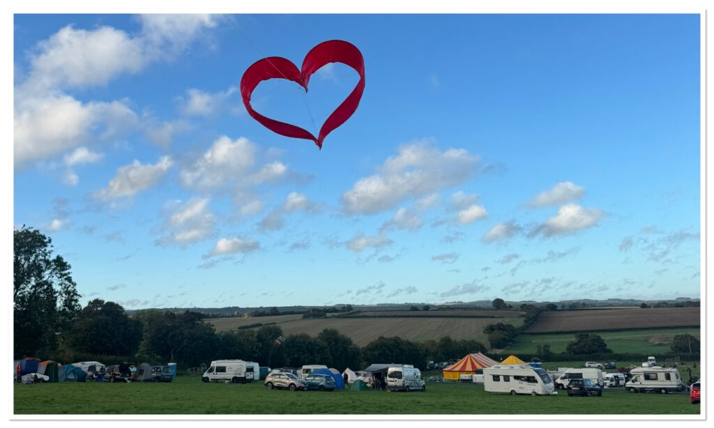 Andy, meanwhile, had built a kite in the shape of a love heart, and with the wind strength starting to pick up to the speed of a tornado in Kansas, it actually flew.