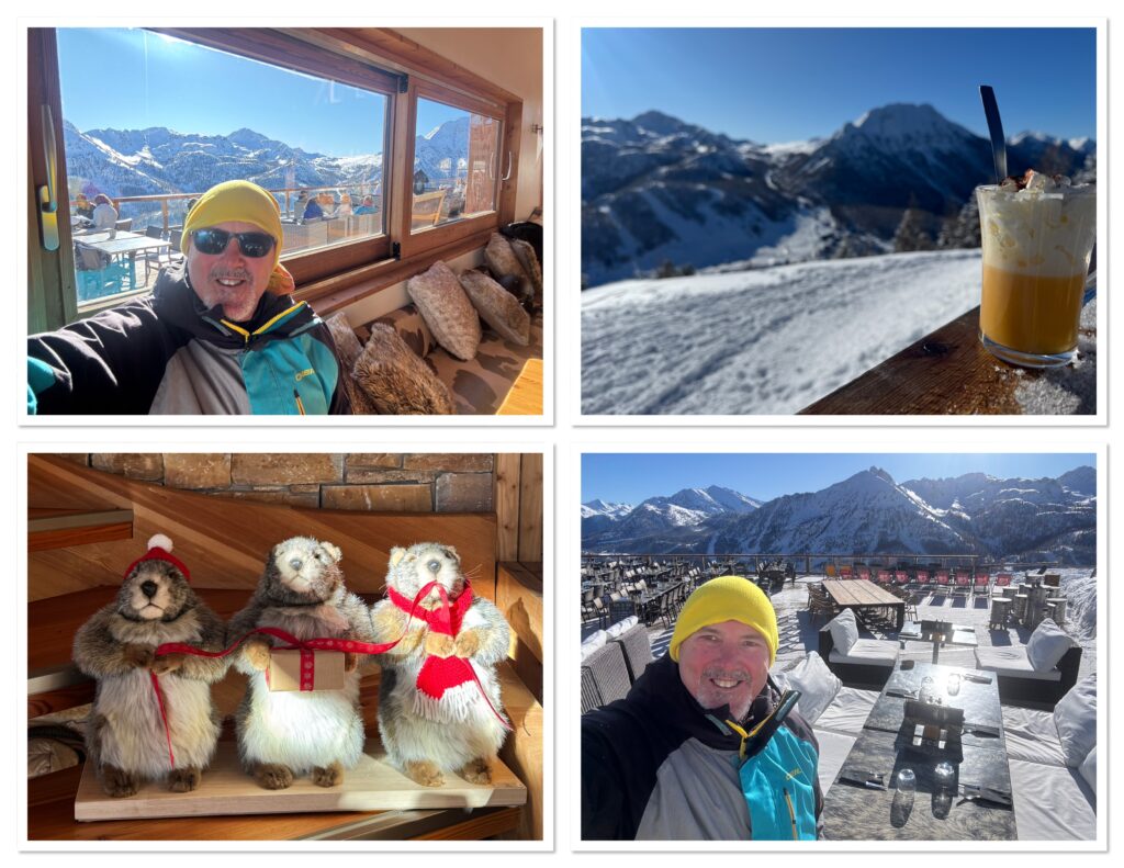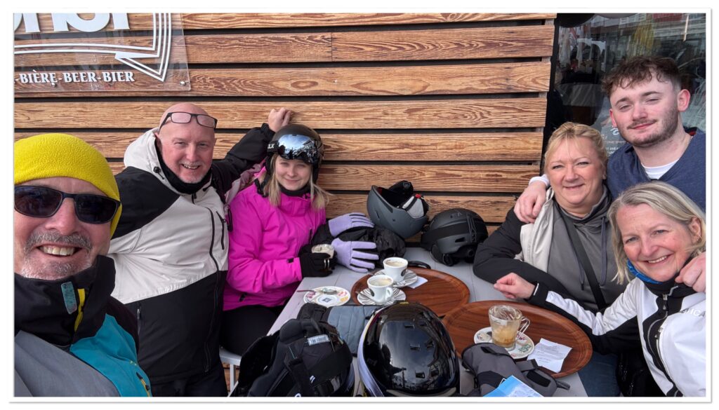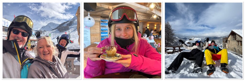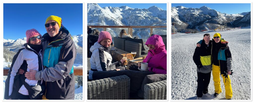 On the first couple of days we drove across to Sestriere to visit Sandra and Paul who were staying at a rather swanky hotel in San Sicario, Italy. It was a tad more upmarket than our place, something they’d booked with Crystal Ski immediately after our big family trip last year.