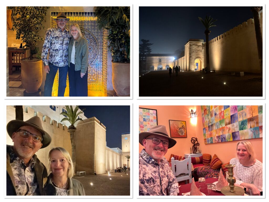 Accommodation 2: Essaouira – Riad Malaïka, 17 Rue Zayan, Essaouira 44100. This is again 9.6 on Booking.com and was very comfortable, with amazing service. Central too. We stayed two nights. It was the most pricey of the trip, but worth it given the quality.