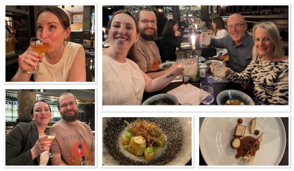 The meal was, as ever, delicious, though I must admit I found myself more absorbed in conversation with Sarah and Alex. And the cocktails? Excellent. Not something we’d normally choose, but absolutely the right decision for this menu.